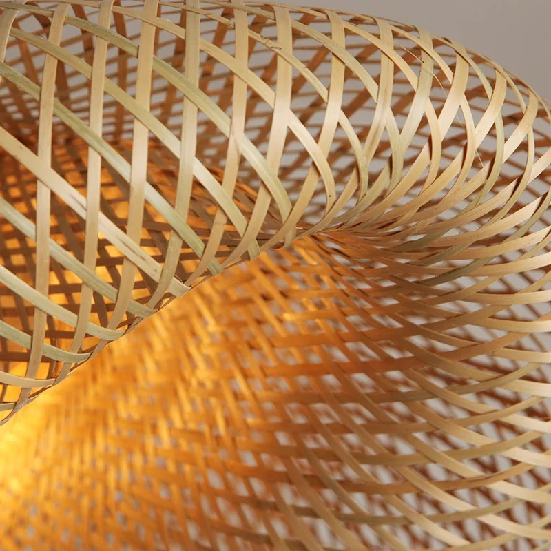 Classical Bamboo Pendant Light Hand Knitting Restaurant Vintage Style Chandeliers Bedroom Kitchen Lighting Shades E27 Base
