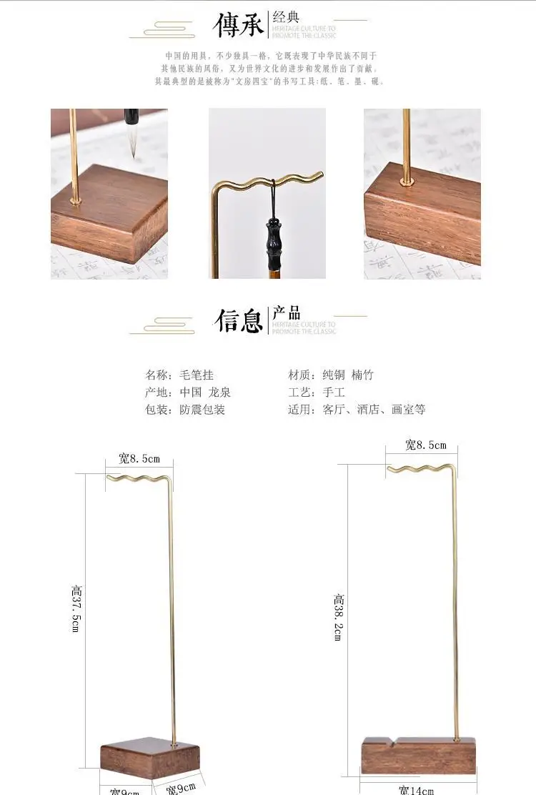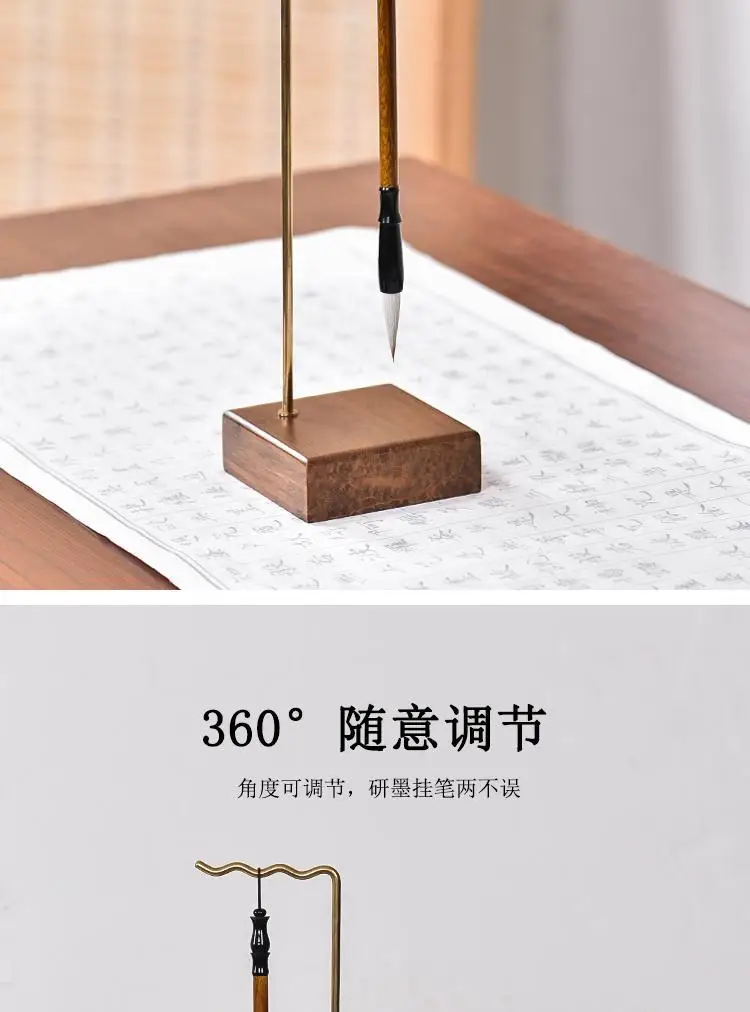 Creative pure copper brush holder pen hanging bamboo brass multi-function simple modern study four treasures pen holder storage